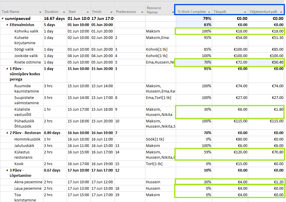 - Vajadusel lisa ka % Complete, et arvutuse alus oleks kohe nähtav.
